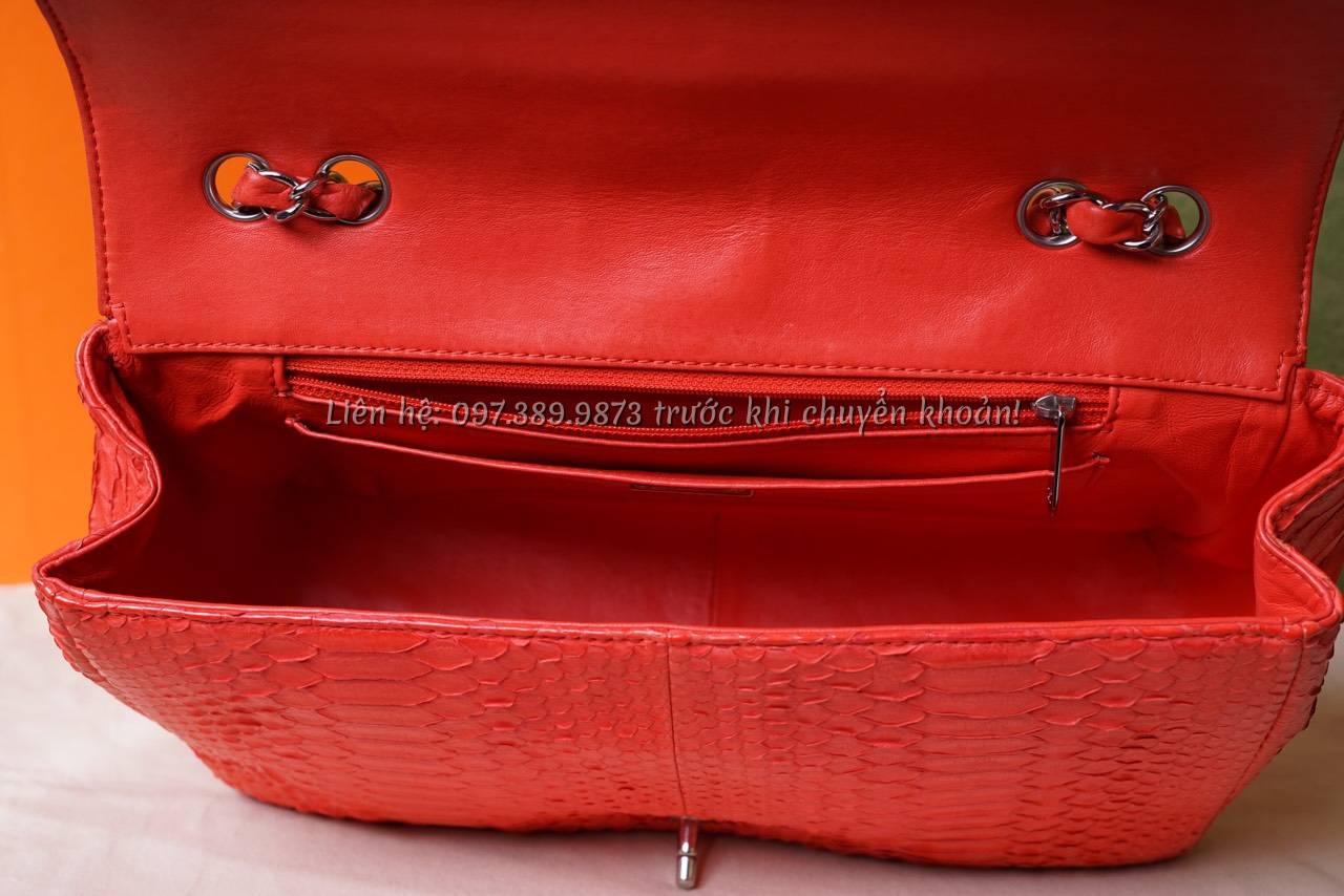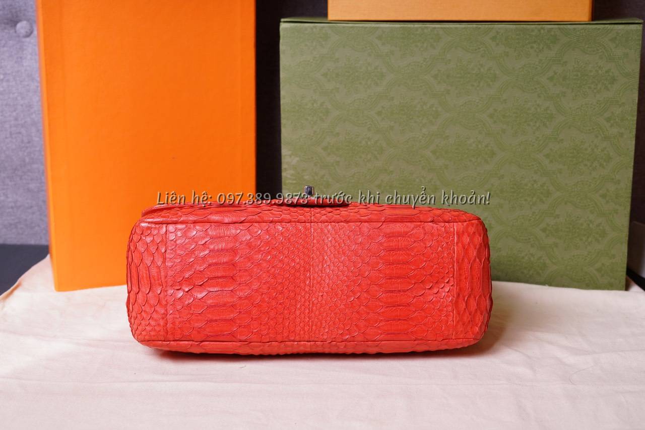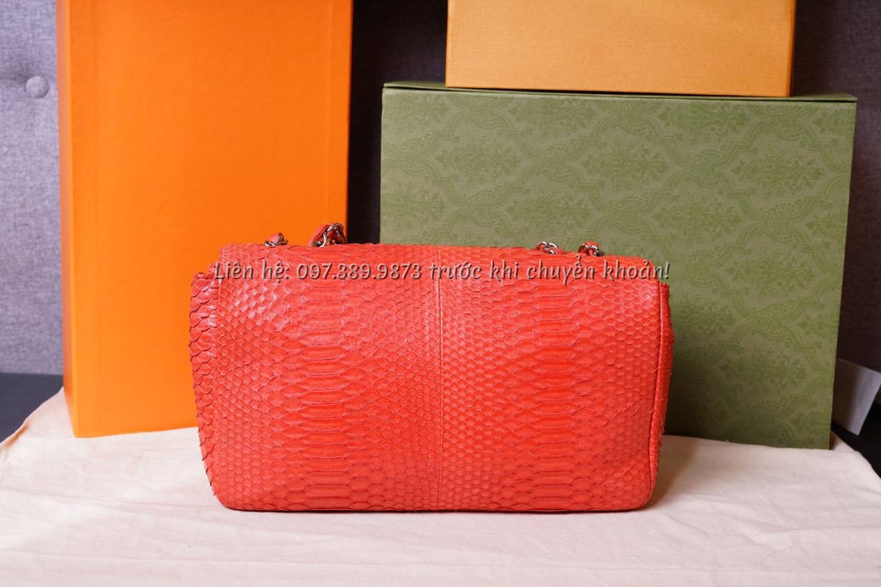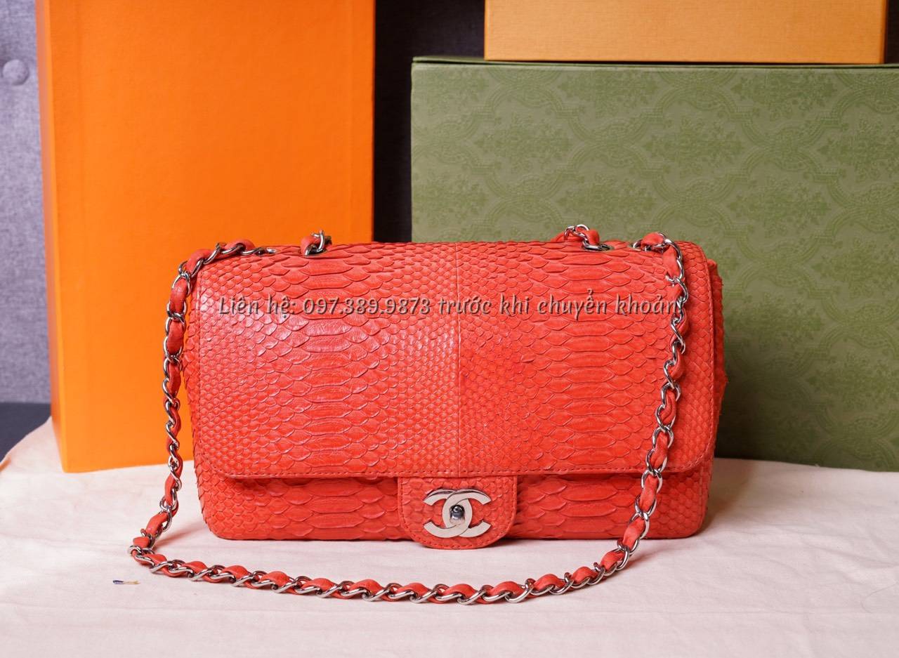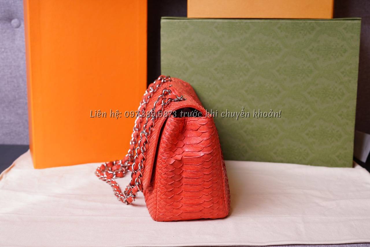 Túi Chanel Python Classic Nắp Gập Màu Cam Khóa Vàng
